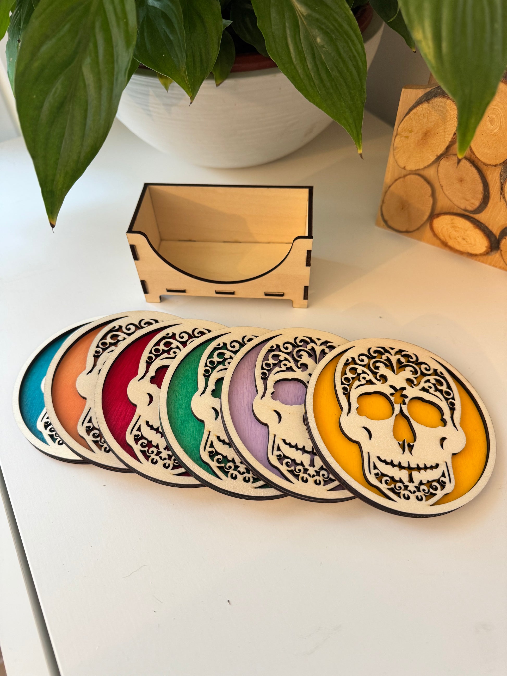 Sous-verres en contreplaqué de peuplier – Naturels & Écologiques têtes de mort / skull